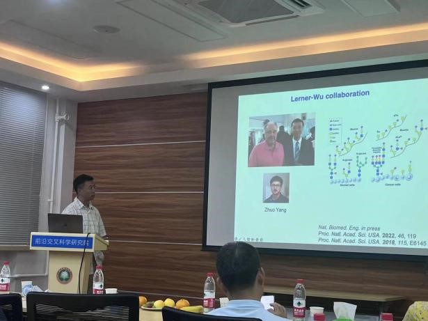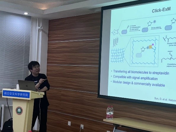2023年6月8日下午,由伟德国际唯一官网入口研究生院主办、前沿交叉科学研究院、生命学院和化学与化工学院共同承办的北理工“百家大讲堂”系列讲座在求是楼426会议室举行。应前沿交叉科学研究院王志敏副教授的邀请,北京大学陈兴教授和美国Scripps研究所的吴鹏教授分别做了题为“糖密码的化学解析”和“Development of T-cell based immunotherapies for the treatment of solid tumors”的精彩学术报告。两位教授分别师从2022年诺贝尔化学奖得主Carolyn R. Bertozzi教授和K. Barry Sharpless教授,报告主题围绕诺奖成果点击化学和生物正交标记在神经生理病理机制分析以及肿瘤治疗方面的应用。
