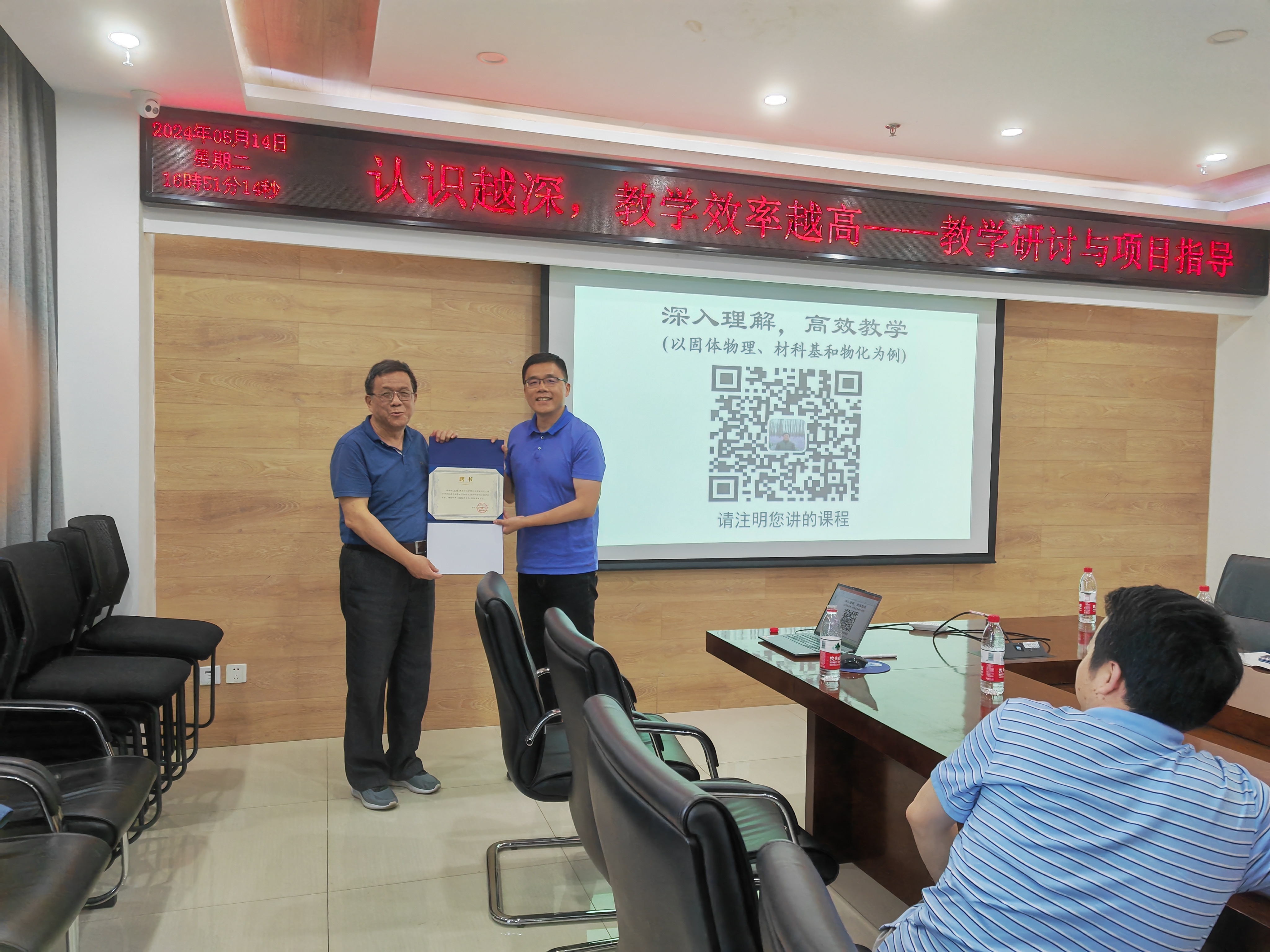 2024年5月14日,应前沿交叉科学研究院邀请,南京理工大学吴锵教授在中关村校区5号楼1011会议室开展了教学研讨报告活动。活动由前沿交叉院院长陈棋主持,20余名青年教师参加了活动。 吴锵以《深入理解,高效教学》为题作了教学研讨报告。他以“固体物理”“材料科学基础”和“材料物理化学”等课程为例...