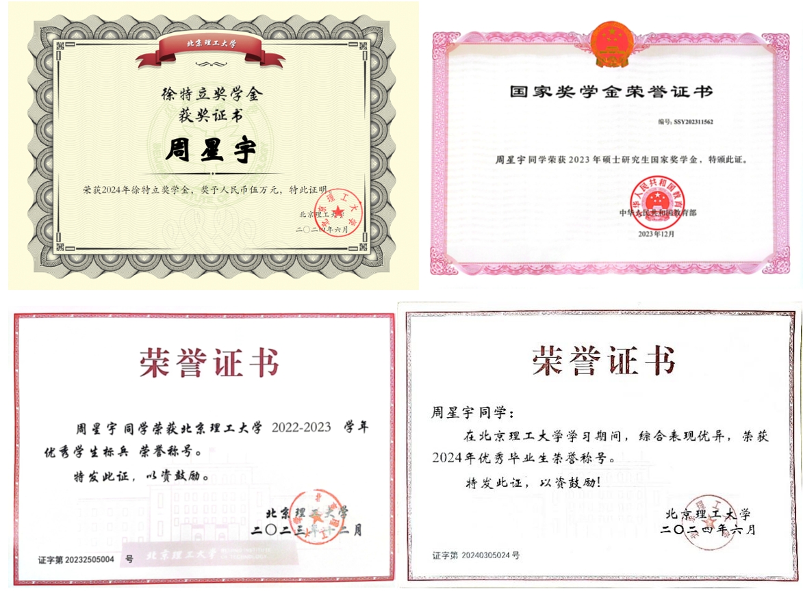 近日,2024年伟德国际唯一官网入口最高荣誉奖学金——徐特立奖学金获奖名单出炉,8名本科生、5名硕士研究生、5名博士研究生,共18名优秀北理学子获此殊荣。前沿交叉科学研究院/信息与电子学院2021级硕士研究生周星宇在众多参评者中脱颖而出,荣获2024年徐特立奖学金,让我们一起倾听他的故事,走进他乘风破浪的科研探索之路。