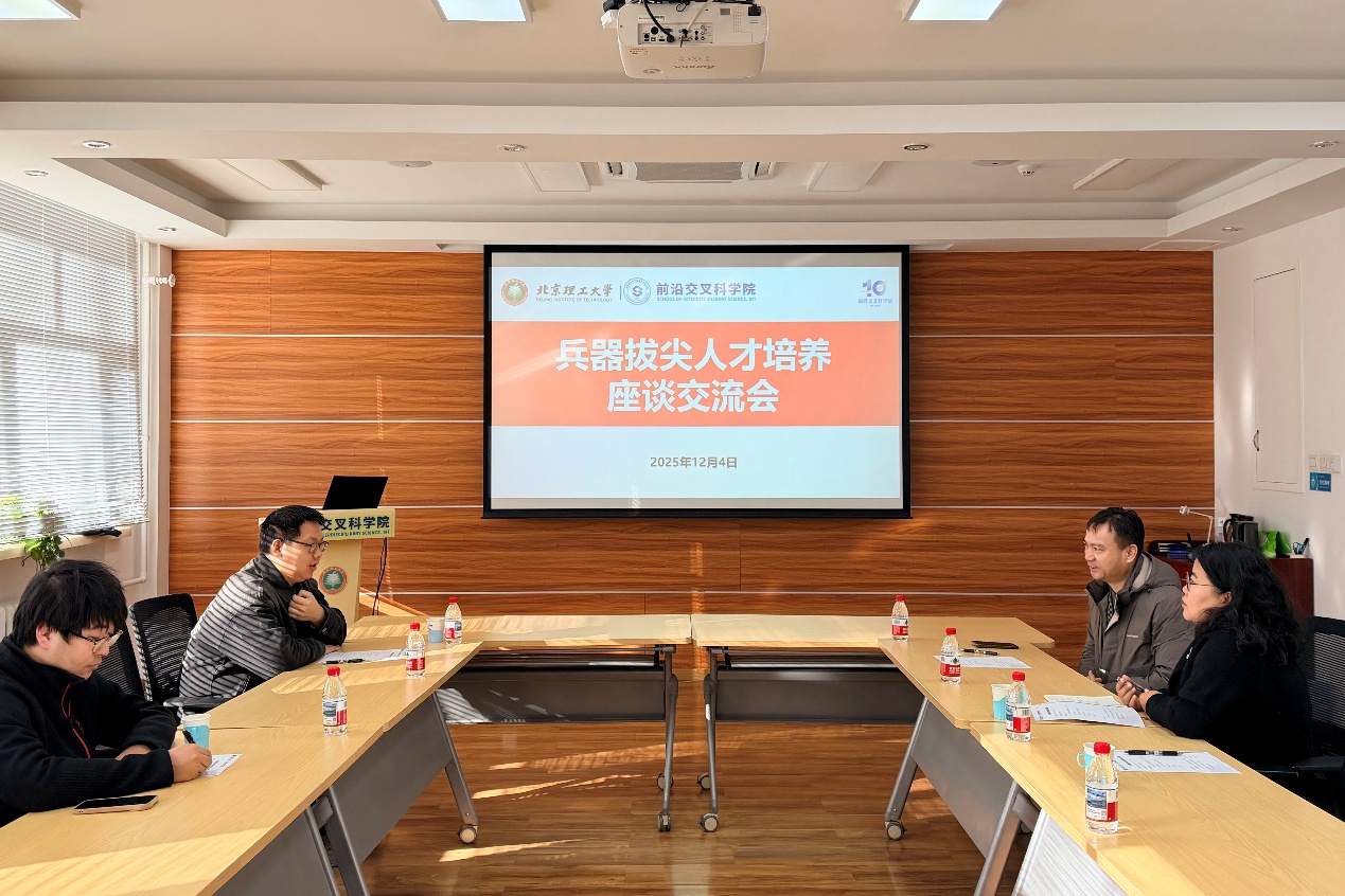 2025年12月4日上午,兵器集团人才院马小花副院长受邀到访前沿交叉科学院,围绕兵器拔尖人才培养进行专题交流。前沿交叉科学院党委副书记副院长陈旵明、博士生导师毛天奇及博士生代表参加了座谈。