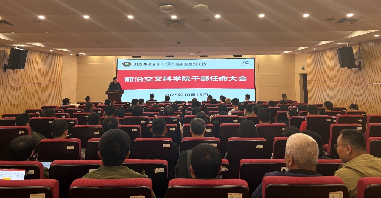 2025年10月15日,前沿交叉科学院在中关村校区图书馆报告厅召开干部任命会议。党委组织部副部长任峻峰,前沿交叉科学院领导班子、教授委员会成员、教师代表及机关工作人员参加会议。会议由党委书记郑德智主持。 任峻峰代表学校党委宣读了任命决定,邵建锟任前沿交叉科学院副院长,并介绍了邵建锟同志基本情况...